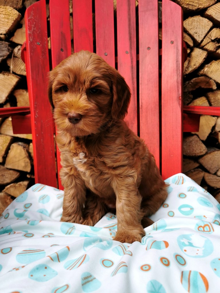 This litter is a medium size, around 30 and 45 pounds. They will be in caramel range colours or chocolate.